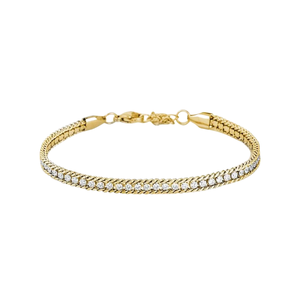 Ženska narukvica Freelook u zlatnoj boji, modernog i elegantnog dizajna sa cirkonima . Izrađena od hiruškog čelika.
