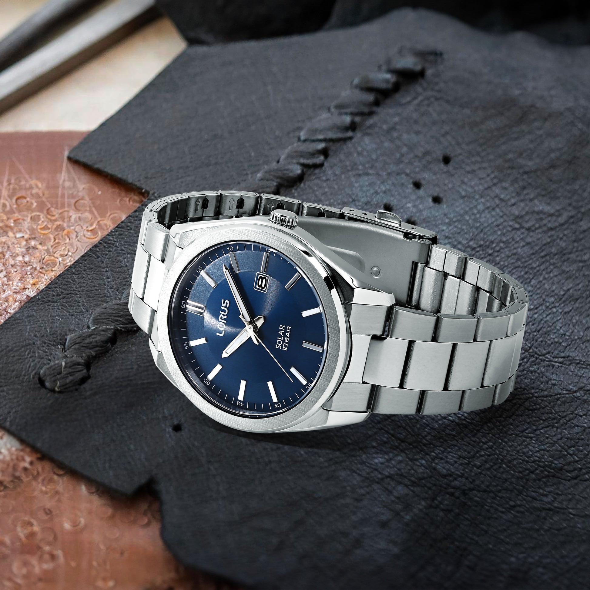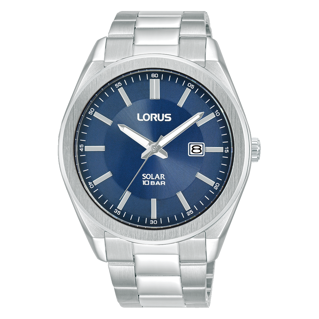 Lorus RX353AX9 je muški sat sa okruglim čeličnim kućištem prečnika 42,5 mm i metalnom narukvicom. Brojčanik je plave boje sa analognim prikazom vremena i datumom, a sat pokreće solarni kvarcni mehanizam. Mineralno staklo i vodootpornost do 100 m omogućavaju svakodnevno nošenje, uključujući plivanje. Robustnog je i klasičnog dizajna, idealan za aktivan i svakodnevni stil života.