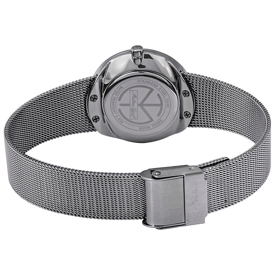 Mathey‑Tissot Milly D403AN je elegantni ženski ručni sat, pokretan švajcarskim kvarcnim mehanizmom Ronda 762. Kućište je od nerđajućeg čelika (316L), prečnika 30 mm i debljine oko 8 mm, sa sigurnosno obloženim safirom za bolju otpornost na ogrebotine. Brojčanik je crne boje, ukrašen „mother of pearl“ efektom, sa srebrnim indeksima, a bezel je fiksan u srebrnoj nijansi. Narukvica je od čelika sa pletenom mesh (milanskom) strukturom širine 16 mm, sa kopčom „fold over slip‑through“. Vodootpornost iznosi 3 ATM prema proizvođaču, što znači da je otporan na prskanje i vlagu, ali nije preporučljiv za nošenje u vodi.