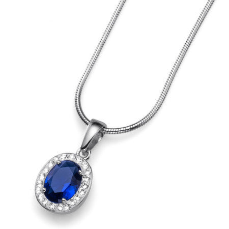 Ženska srebrna ogrlica brenda Oliver Weber sa priveskom u plavoj boji swarovski kristala.
