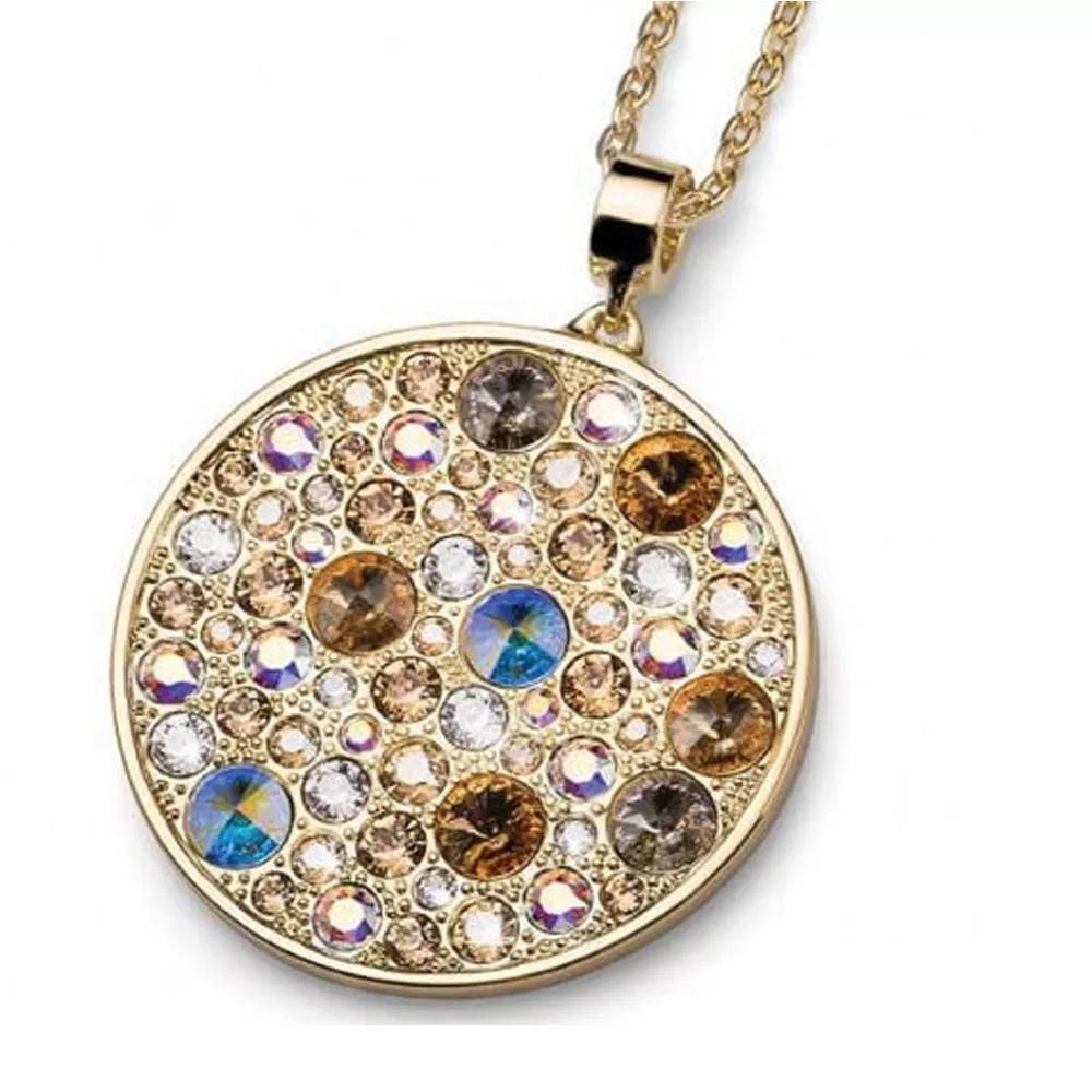 Ženska ogrlica modernog dizajna brenda Oliver Weber. Karakteriše je privezak u obliku kruga sastavljen od Swarovski kristala nežnih boja.