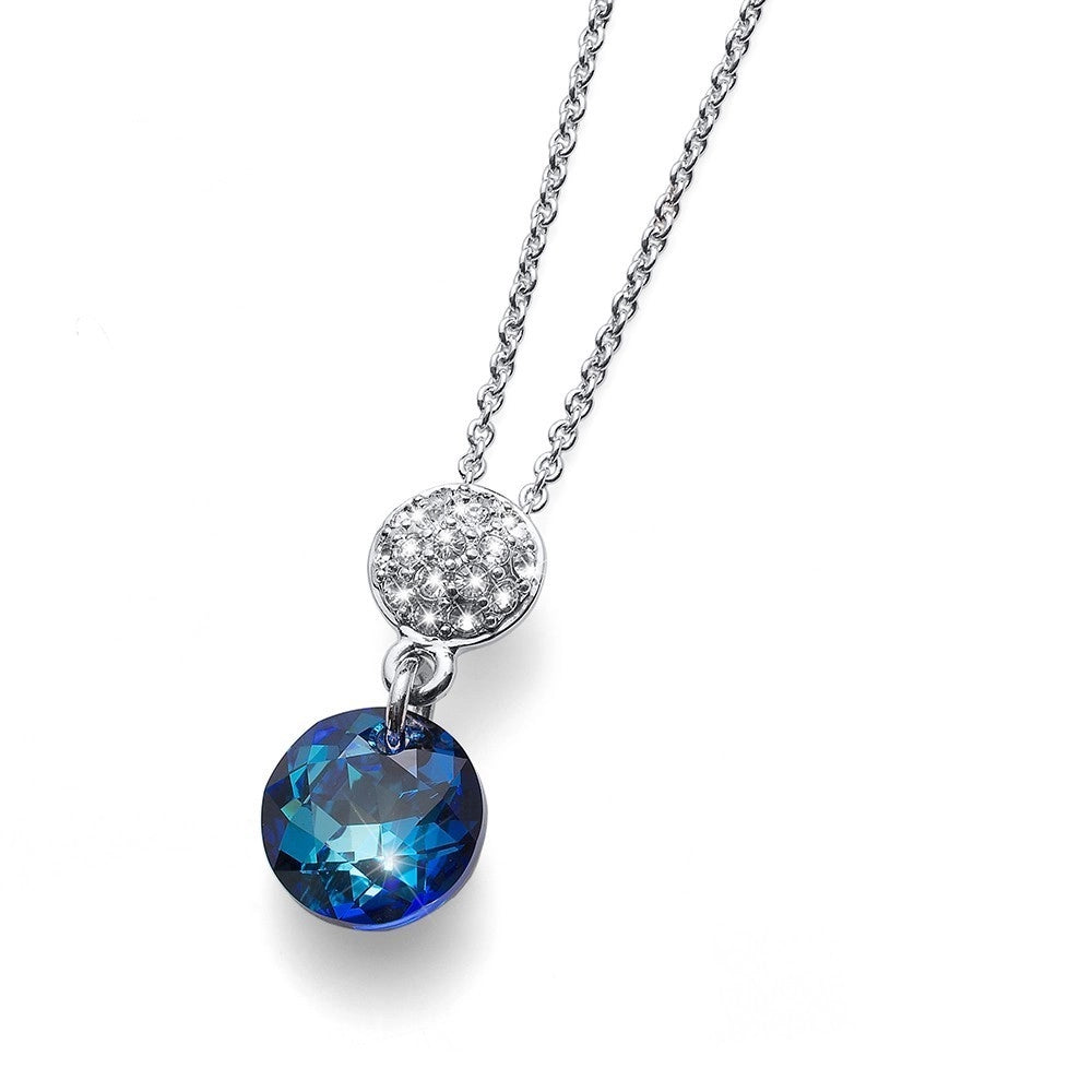 Ogrlica brenda Oliver Weber u srebrnoj boji sa priveskom Swarovski kristala plave boje.