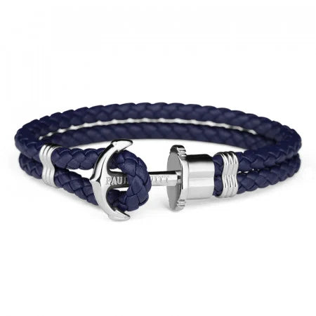Paul Hewitt teget kožna narukvica sa srebrnim sidrom. Dužina narukvice je 18cm