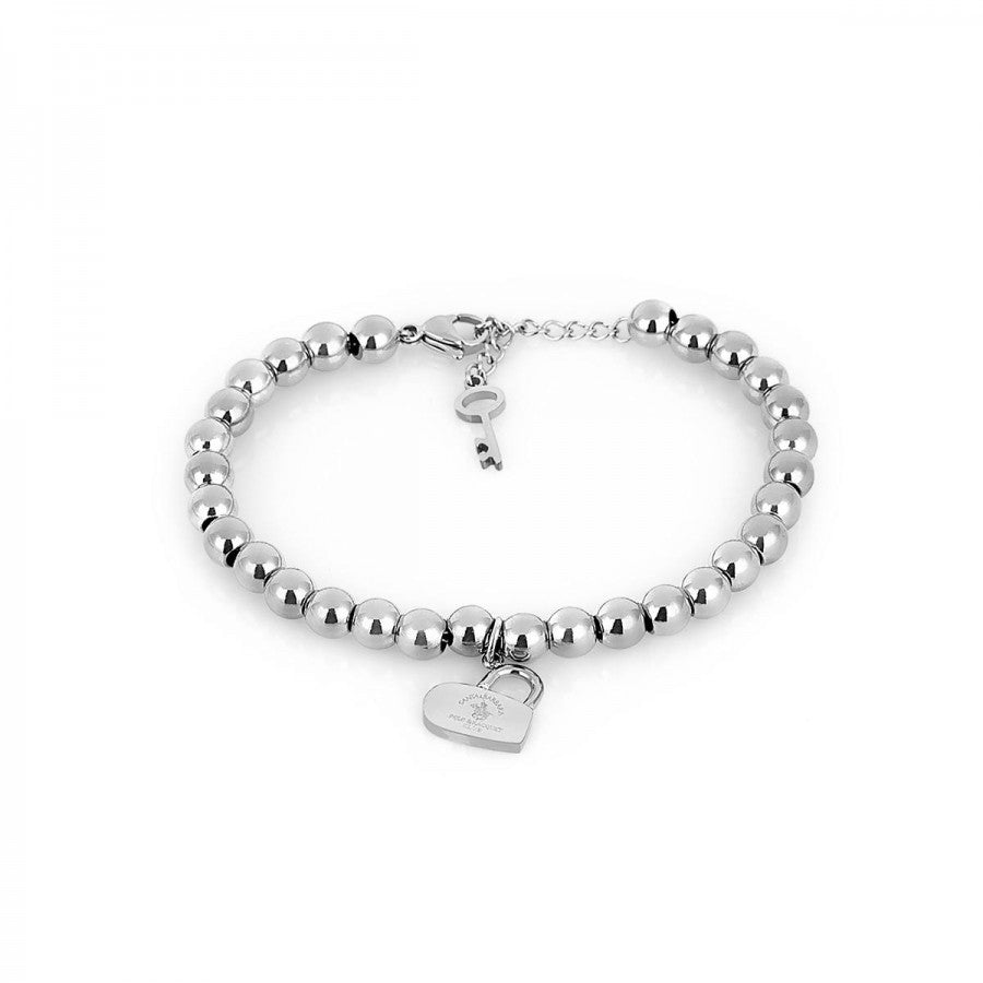 Ženska narukvica u srebrnoj boji sa priveskom srca. Narukvica je izradjena od nerdjajućeg čelika.