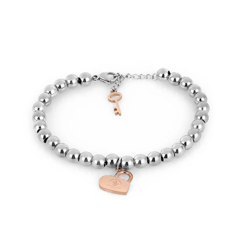 Ženska narukvica u srebrnoj boji sa priveskom srca. Narukvica je izradjena od nerdjajućeg čelika.