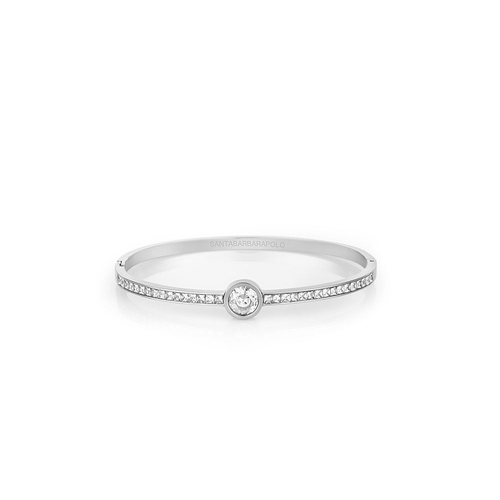 Ženska narukvica u boji srebra sa sitnim cirkonima koja unosi notu elegancijue. Narukvica je izradjena od nerdjajućeg čelika.