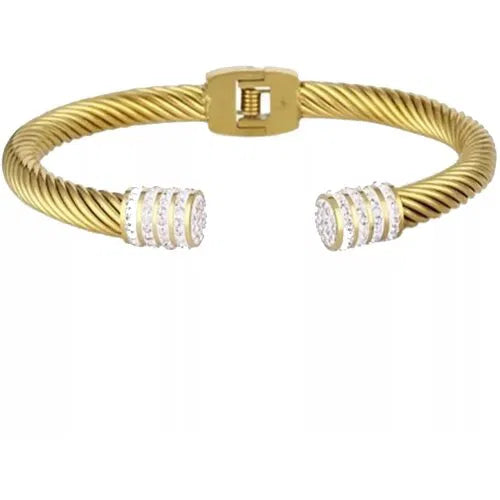 Ženska narukvica u zlatnoj boji sa cirkonima elegantna i moderna. Narukvica je izradjena od nerdjajućeg čelika.