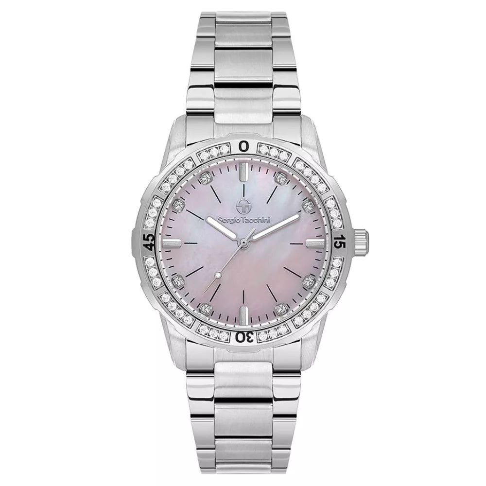 Elegantan dizajn ženstvenog sata sa sportskom notom. Sergio Tacchini poznati Italijanski brend je sa ovim modelom spojio eleganciju i sport sa narukvicom od nerdjajućeg čelika, model je idealan kako za dnevne avanture tako i za elegantnije prilike.